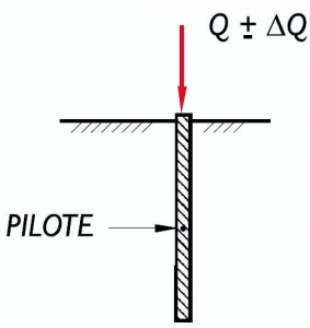 Calcular un pilote ante una carga estática de compresión en cabeza es fácil, solo ha de cumplirse que el cociente entre la carga de hundimiento Qh y la carga de compresión actuante sobre el pilote Q,
